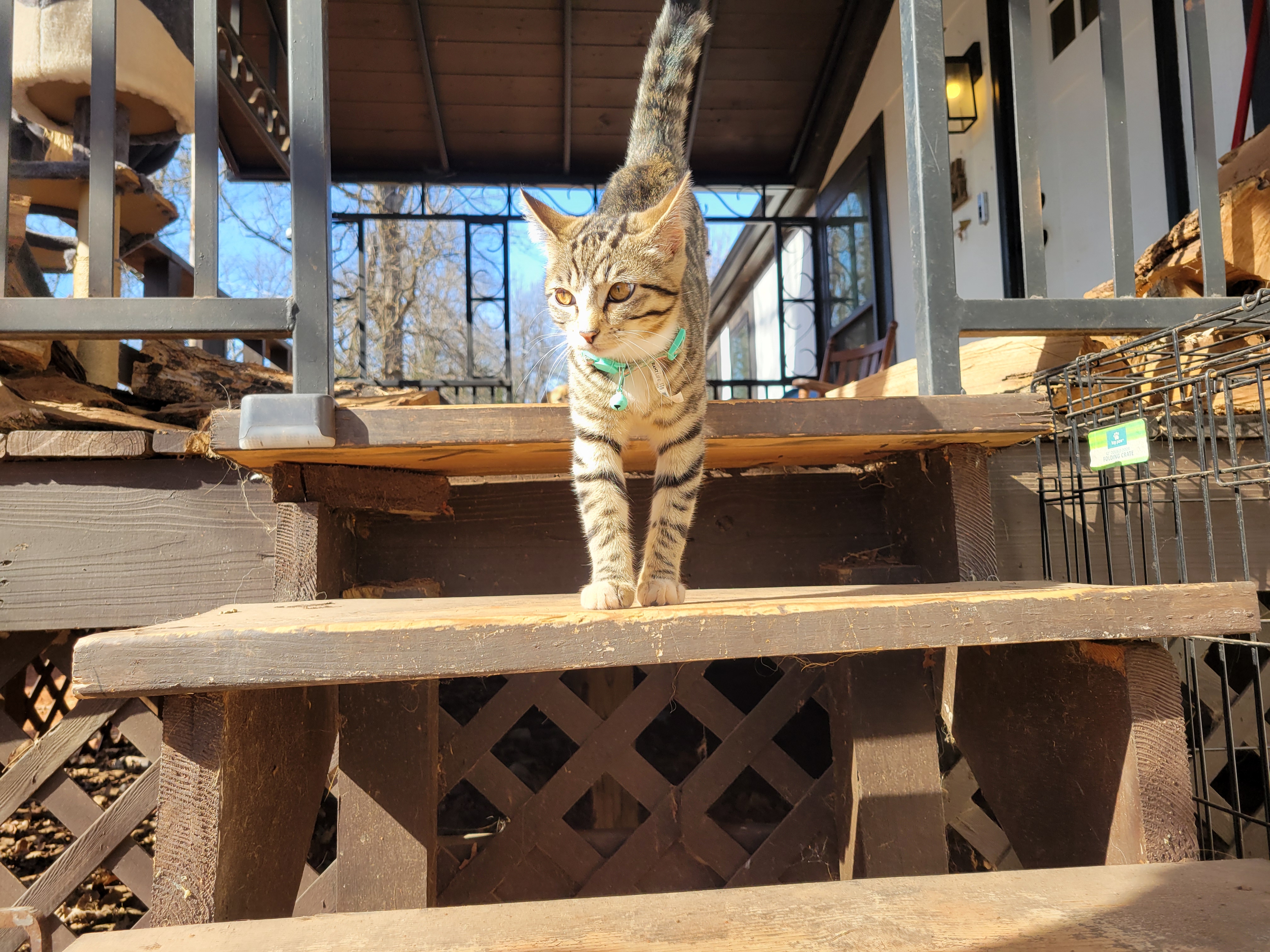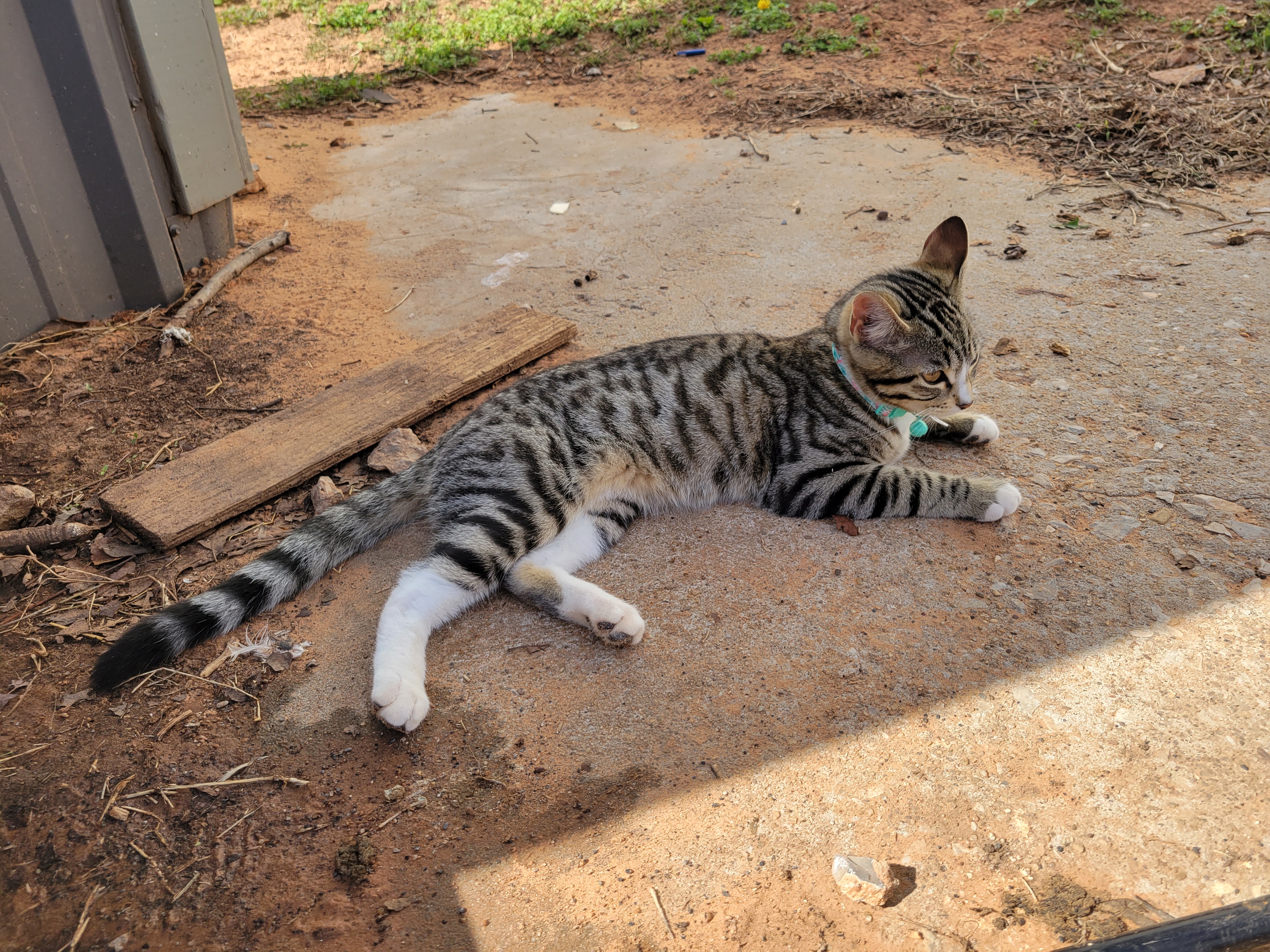 Sylvie started out as a very pampered indoor cat for the first couple months, but now she’s outside nearly as much as she is inside—climbing trees, attempting to hunt our chickens, and stretching out in the sun for a good catnap.