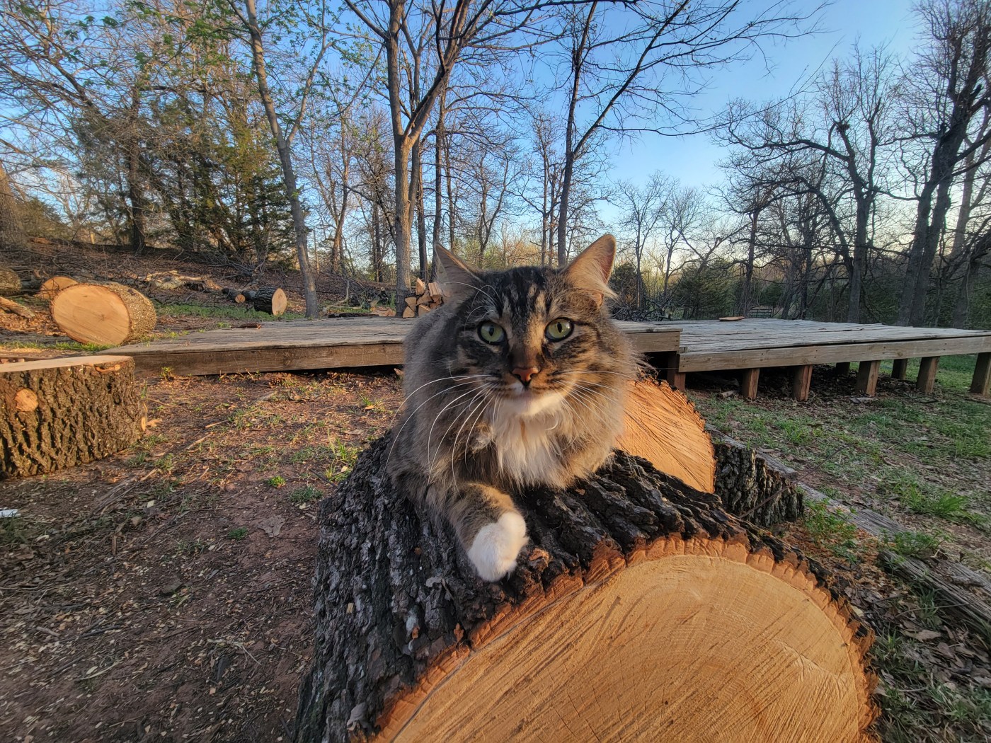 Sylvie started out as a very pampered indoor cat for the first couple months, but now she’s outside nearly as much as she is inside—climbing trees, attempting to hunt our chickens, and stretching out in the sun for a good catnap.